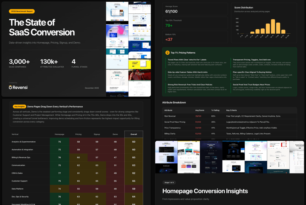 Insights from 3,000+ SaaS funnels to help you spot friction, compare against top performers, and find opportunities to grow ARR without more traffic.